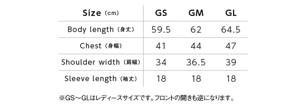 | GS GM GL こちらの商品は男女兼用(ユニセックス)でメンズサイズが基準です。女性用サイズ(レディス)WM・WL・GS・GM・GLです。 ※衣服サイズでお困りのお客様は普段着用しているウェアを平置きに採寸し、上記サイズ表と比較しご注文ください。 |