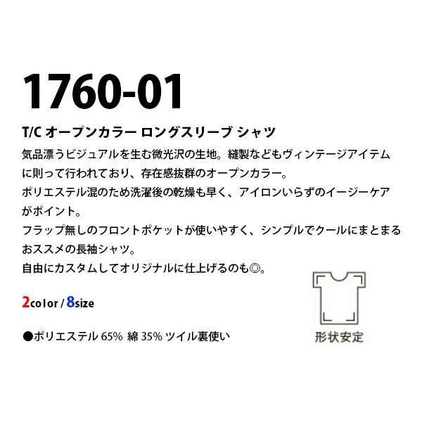 ・T/Cツイル生地を裏使いし耐久性とかろやかさをそなえた長袖のオープンカラーシャツ。