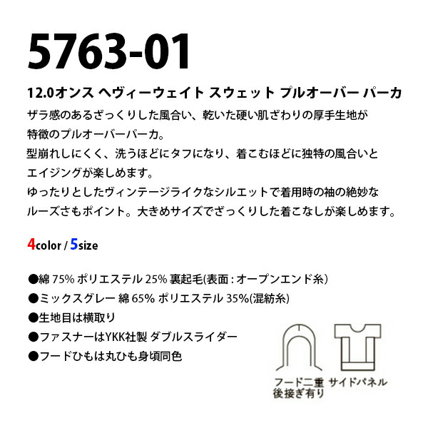 乾いた硬い肌触りの厚手生地が特徴のプルオーバーパーカー