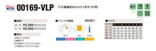 5.8オンス 長袖ポロシャツ(ポケット付)