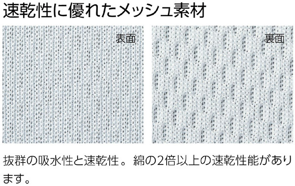 | 4.4oz / ポリエステル100% メッシュ 特徴:吸汗速乾・UV CUT・UPF20+(紫外線保護指数) |