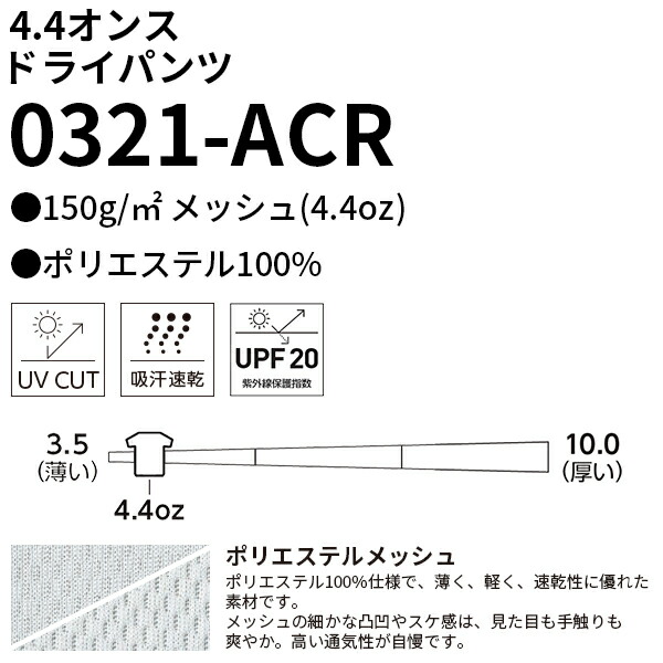 | 4.4oz ポリエステル メッシュ 吸汗速乾 UVカット UPF20 |