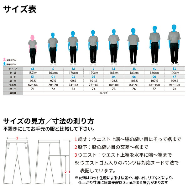 | 3L 4L 5L こちらの商品は男女兼用(ユニセックス)でメンズサイズが基準です。女性用サイズ(レディス)WM・WL・GS・GM・GLです。 ※衣服サイズでお困りのお客様は普段着用しているウェアを平置きに採寸し、上記サイズ表と比較しご注文ください。 |