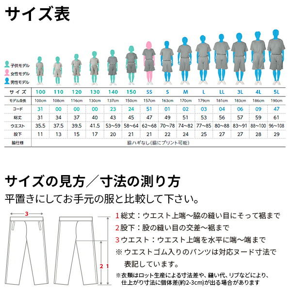 | 100cm 110cm 120 cm 130cm 140cm 150cm ※衣服サイズでお困りのお客様は普段着用しているウェアを平置きに採寸し、上記サイズ表と比較しご注文ください。 |