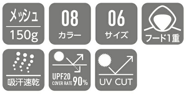 | 4.4oz メッシュ ポリエステル 吸汗速乾 UVカット UPF20 1重フード |