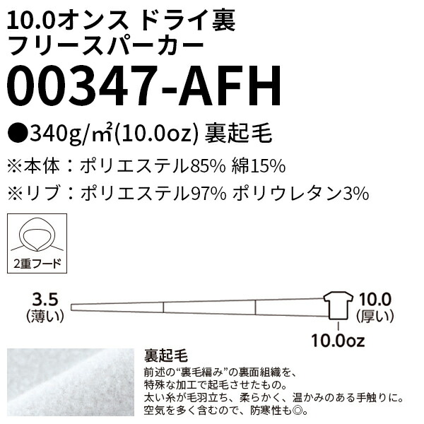 綿100%で裏パイルのパーカーをお探しのお客様はこちらをご確認ください。