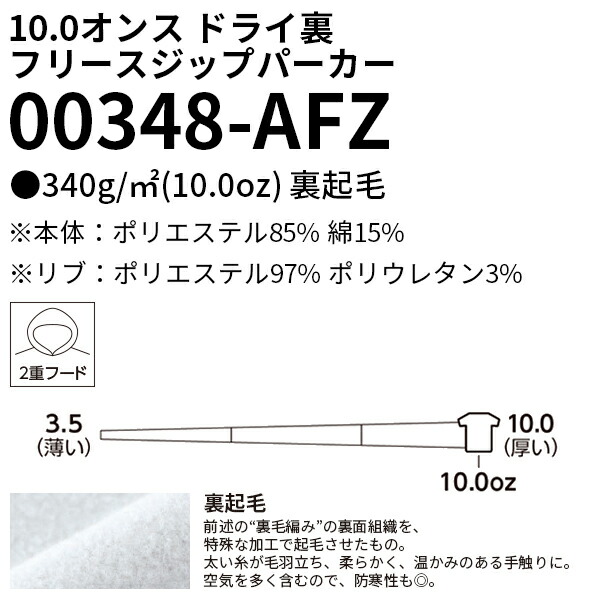 厚手の裏起毛&ドライ素材で乾きが早い優れものジップパーカー